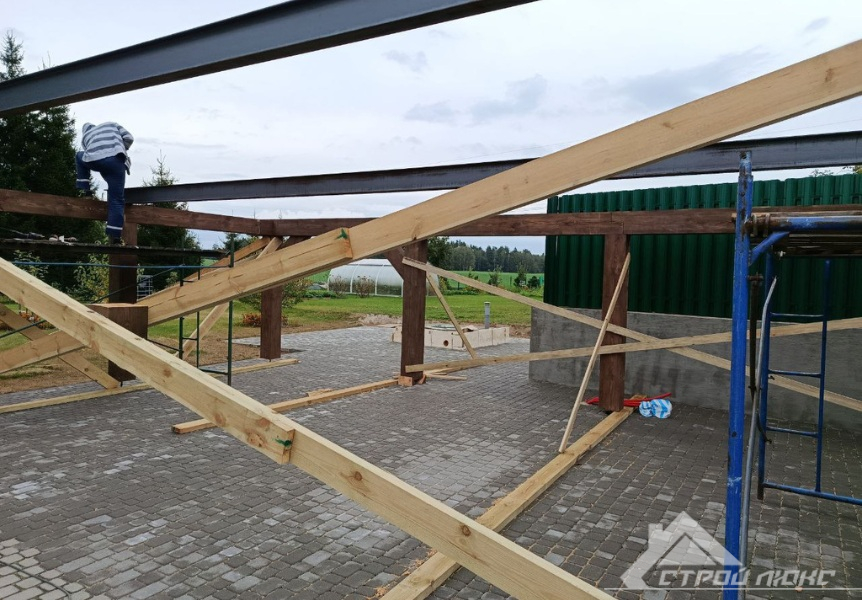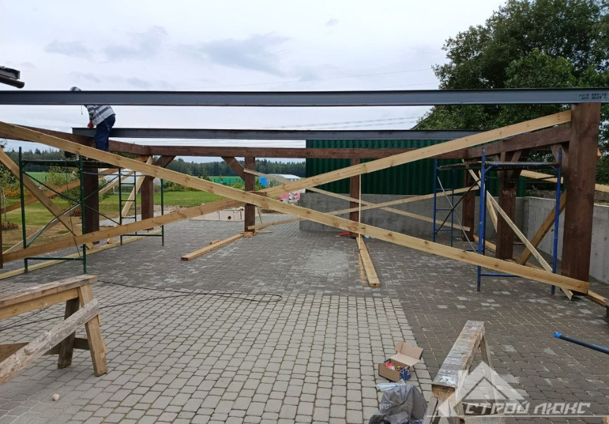 Брус 250х250 (ест влаж), Двутавр 20В1 обрамленный деревом