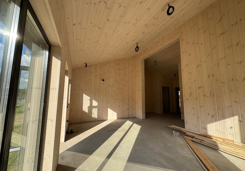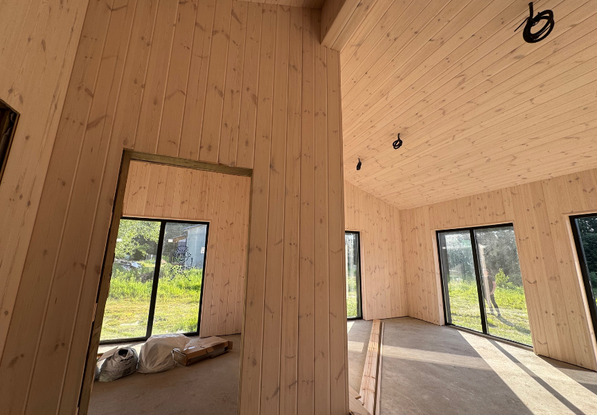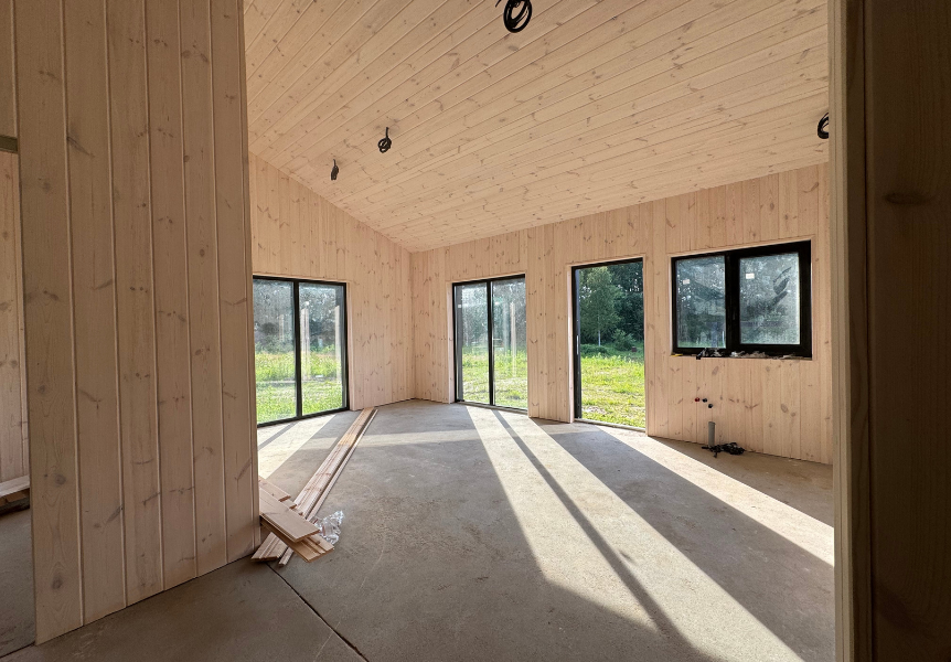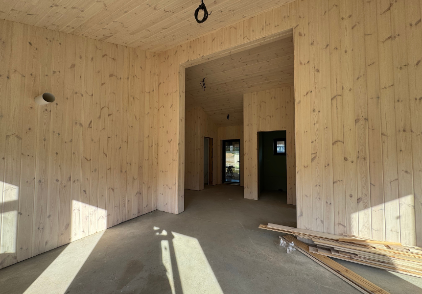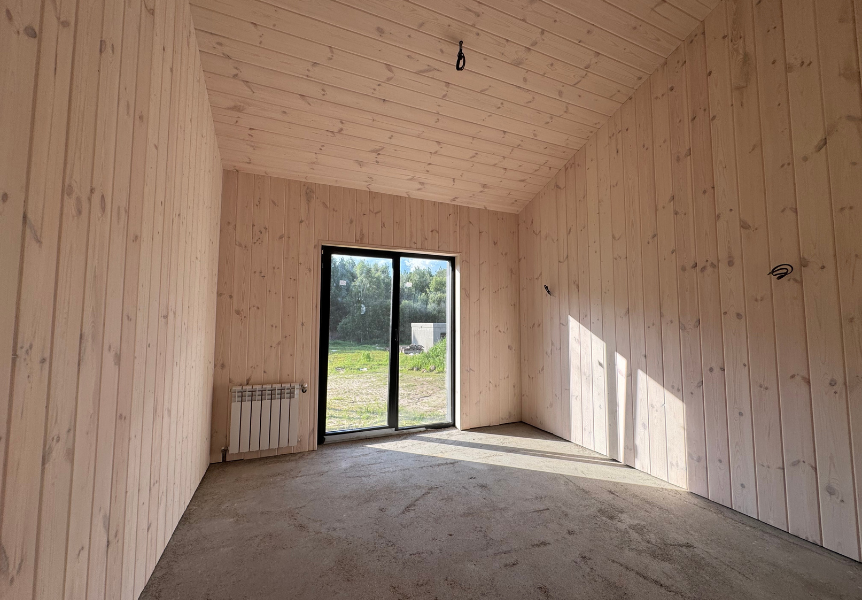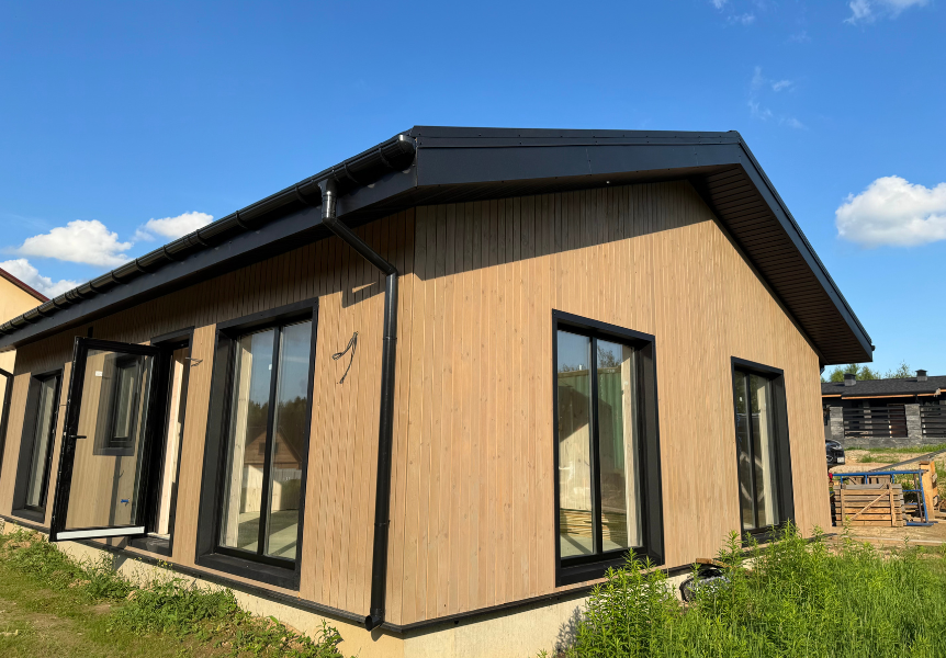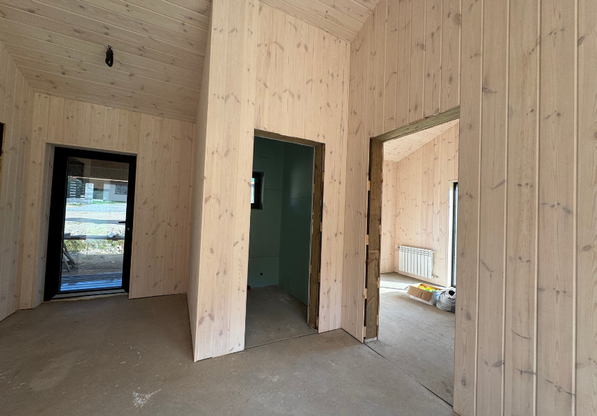 Сдержанность и элегантность дома «Классик-3» несомненно придётся по вкусу многим. Помимо внешней эстетичности, данной дом отличается ещё и максимально удобной планировкой. В нём есть просторная кухня-гостиная, спальня, прачечная, туалет, санузел и прихожая. Главным плюсом является наличие небольшого крылечка, которое поможет сохранить чистоту в доме.