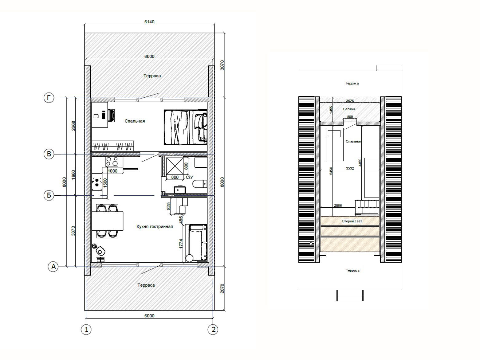 Главной особенностью данного проекта является наличие сразу двух террас, которые позволят комфортно проводить время на свежем воздухе.